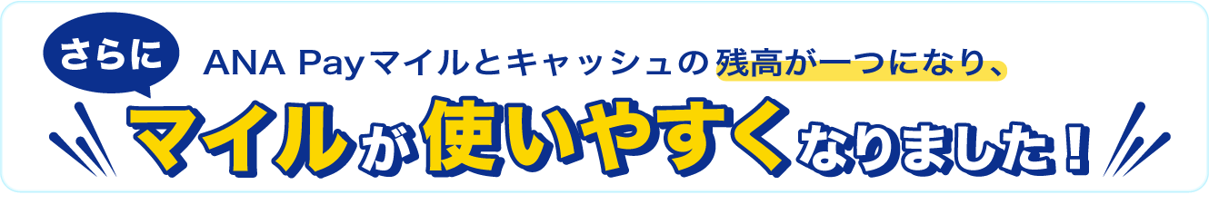 残高が一つになるため、「ANA Payキャッシュ」と「ANA Payマイル」の事前選択が不要になります。