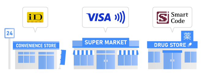お近くのコンビニなど、ちょっとしたお買い物からお気軽にご利用いただけます。