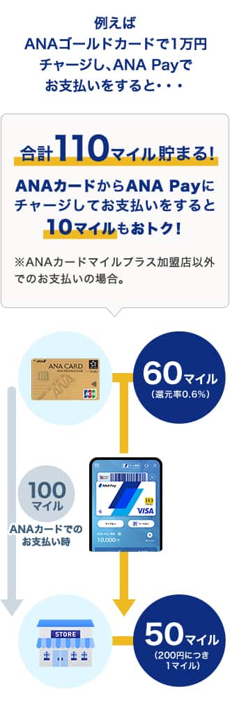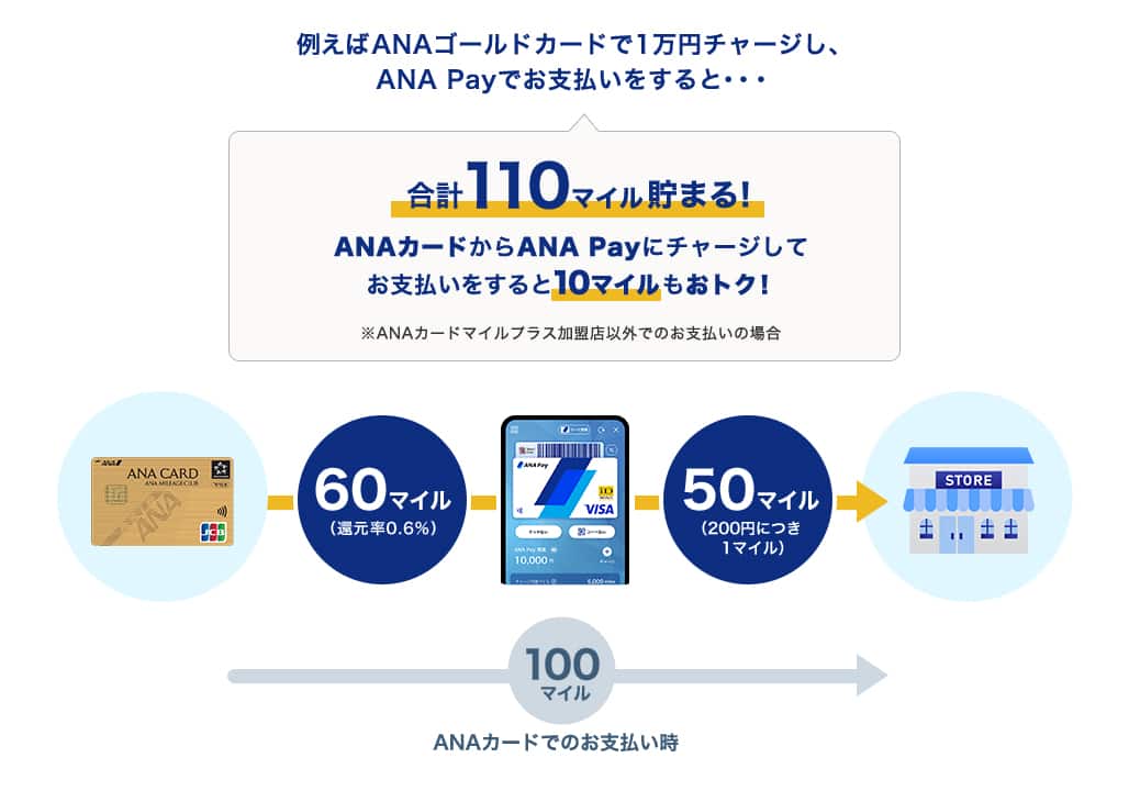 またANAカードからチャージし、ANA Payでお支払いをすると最大1.6%還元されるので、さらにおトクにマイルが貯まります。