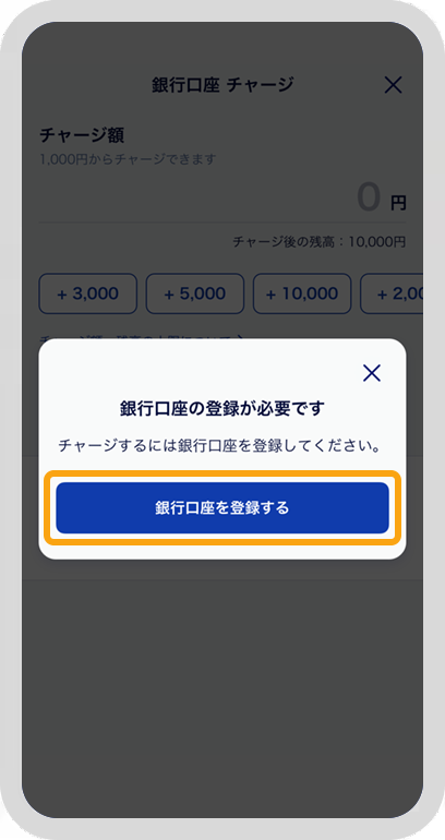 注)複数の銀行口座を登録している場合は、チャージ前にご希望の口座を選択してください。