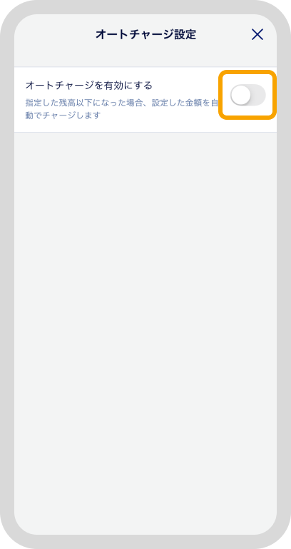 オートチャージ設定画面にて、オートチャージを有効にします。