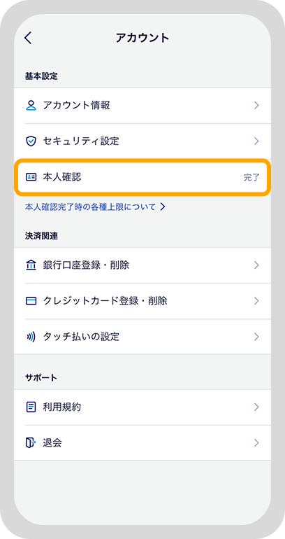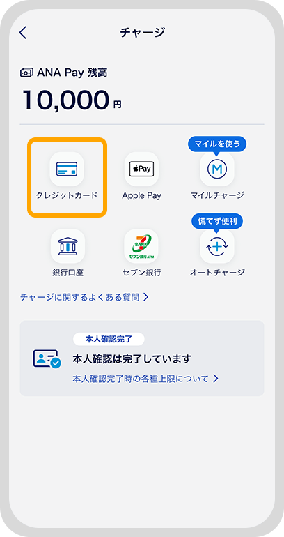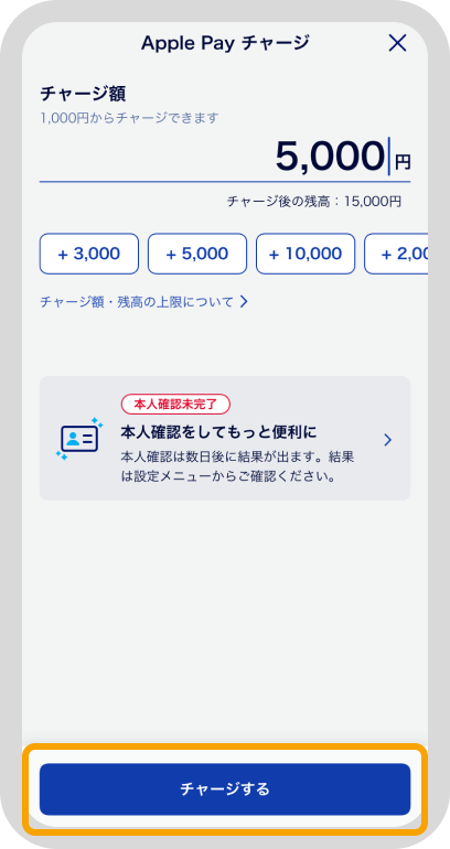 本人確認手続きを行うとチャージ上限、残高上限の金額があがります。