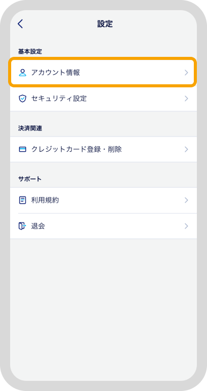 ホーム画面下部にある「アカウント」ボタンをタップします。
