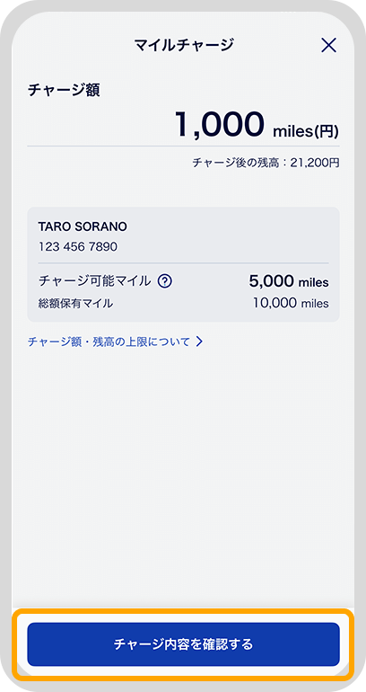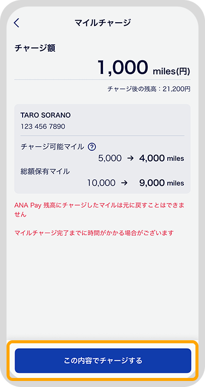 内容をご確認いただき、「この内容でチャージする」をタップします。