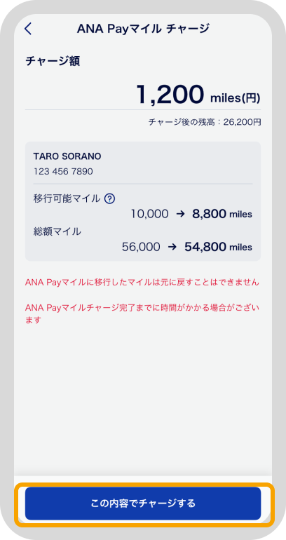 ANA Payにチャージしたマイルは元に戻すことはできません。
