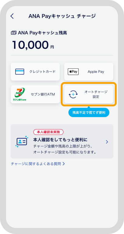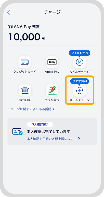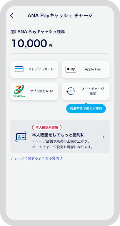 お支払い時に残高不足で慌てることなく便利にANA Payをご利用いただける機能です。