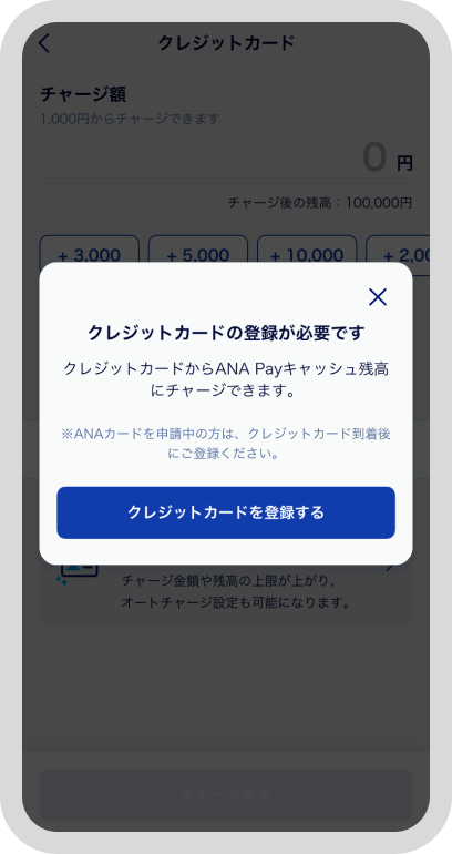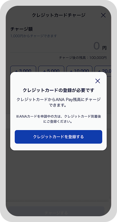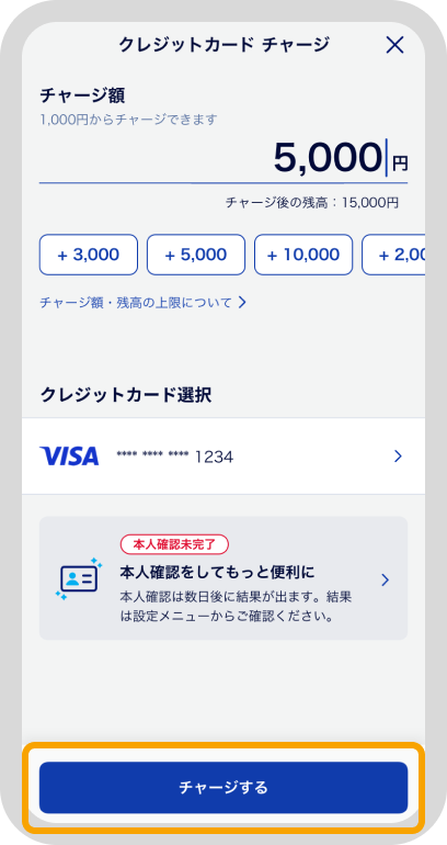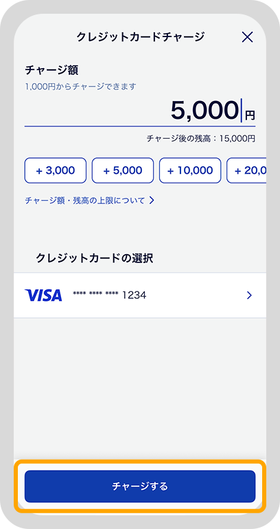注)1,000円以上から1円単位でチャージできます。複数のクレジットカードを登録している場合は、チャージ前にご希望のクレジットカードを選択してください。