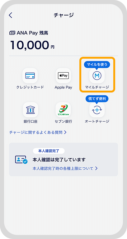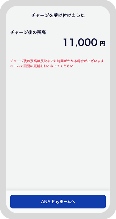 マイルでのチャージの際、ANA Pay残高への反映までに少しお時間がかかる場合があります。