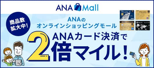 • ANA JCBプレミアムカードをお持ちの方はANA Mallでのお買い物でさらにボーナスマイルを100円(税込)につき1マイル積算いたします。