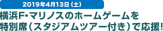 2019年4月13日(土) 横浜F・マリノスのホームゲームを特別席(スタジアムツアー付き)で応援!