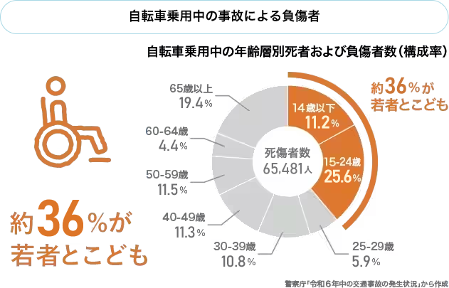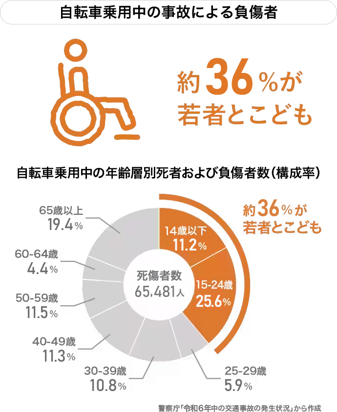 ご自身やお子様が自転車に乗る方にとって頼りがいのある補償です。ご自身のケガの補償だけでなく、賠償事故をおこした場合も補償します。