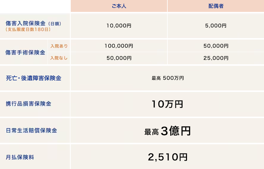 特にご自身やお子様が自転車に乗る方にとって頼りがいのある補償です。