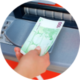 海外ATMで現地通貨を自分の口座から引き出せる。