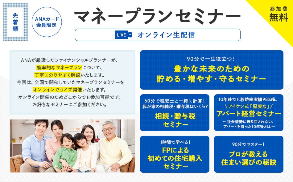 「【ANAカード会員限定】マネープランセミナーについて」とお申し出ください。