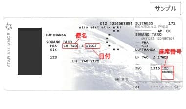確認書類における参照箇所は、航空会社によって異なります。参照箇所を以下よりご確認のうえ、ご搭乗便情報をご入力ください。