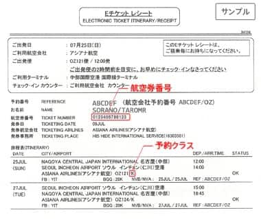 航空券番号や便名が、eチケット控えと搭乗券で相違している場合は、搭乗券の情報を優先してください。