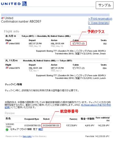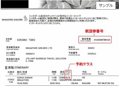 ※航空券番号が以下のように記載されている場合は、左から 13桁目までを入力してください。