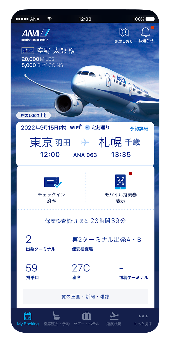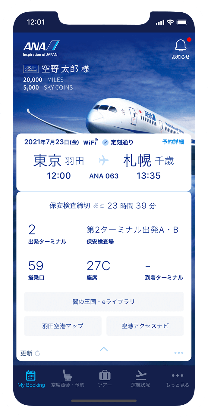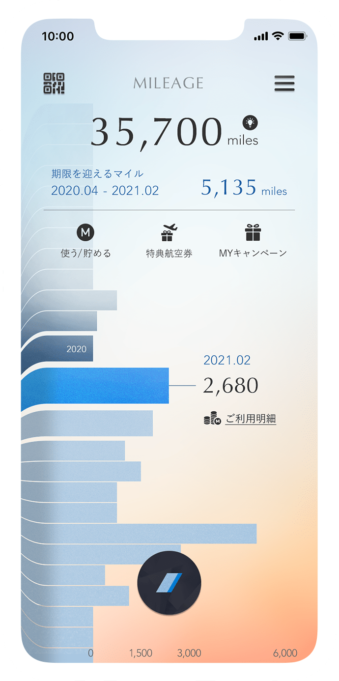 お手持ちのマイル数やプレミアムポイントをいつでもチェック!