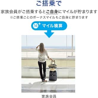 家族会員がご搭乗すると、ご自身(家族会員)にマイルが貯まります。