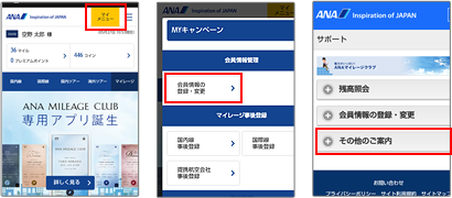 おサイフケータイ®機能付きのAndroid端末(スマートフォン)に機種変更をされた場合は、ANAウェブサイト(スマートフォンサイト)以下の手順に沿って改めてご登録をお願いいたします。ICサービスへの「ケータイ de Edyマイル登録」が必要です。