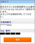 お客様番号下4桁とEdy番号を確認のうえ、「登録」を押します。