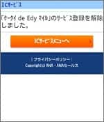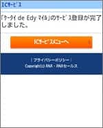ICサービスページに進み、「ケータイ de Edyマイル登録」を選択します。