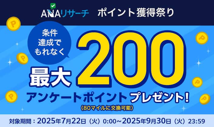 A:ANAリサーチにモニター登録いただいたANAマイレージクラブ会員の皆様にアンケートが届きます。そちらにご回答いただくとポイントを提供いたします。