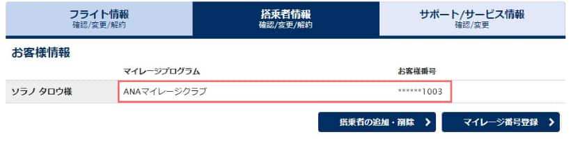 対応方法(1)航空券購入後にANAマイレージクラブお客様番号の入力を行う