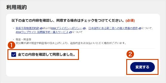 ANA Bizサイト、ANAウェブサイト・スマートフォンサイトでの変更操作が可能です。