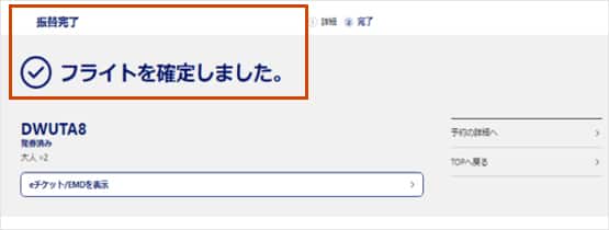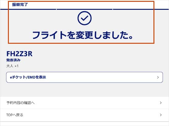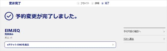 振り替え完了画面から変更後のeチケットお客様控の出力をお願いいたします。