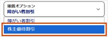 「障がい者割引」と「株主優待割引」の組み合わせの場合、「障がい者割引」がデフォルトです。