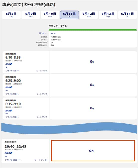 例では、Biz運賃のため、変更手数料はかかりません。運賃の差額もないため、0(ゼロ)円です。
