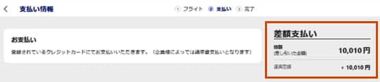 予約便の変更時に差額が追加となる場合は、差額調整金額を表示します。