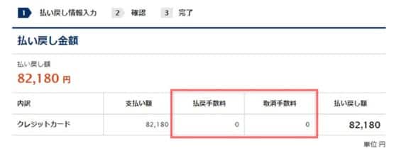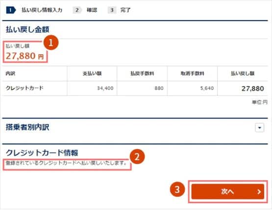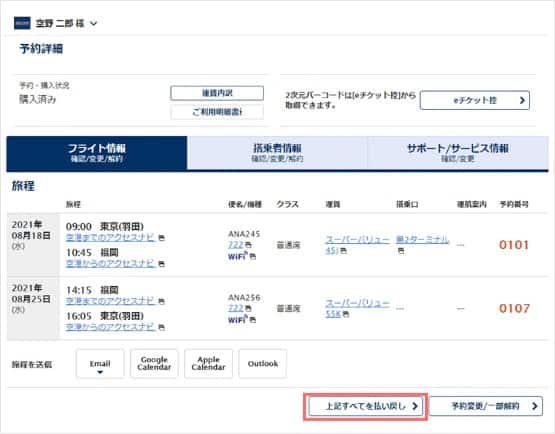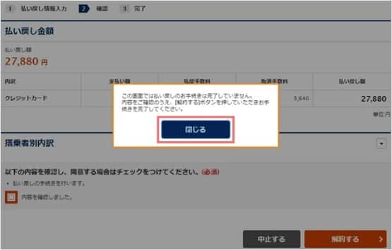 払い戻しを選択すると、予約便の解約が同時に行われます。