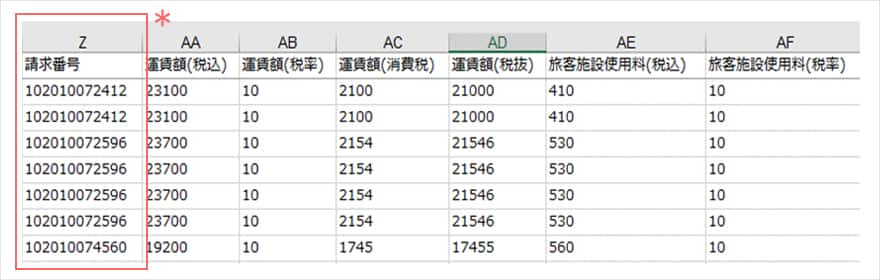 CSVファイルをそのままExcelで開くと、桁数の多い「請求番号」は正しく表示されません。
