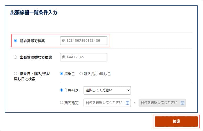 入力)請求番号を入力し、ご利用明細書を開きます。