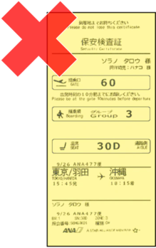 これまで保安検査場で発行していた「保安検査証」は機器のリニューアルに伴い廃止いたします。