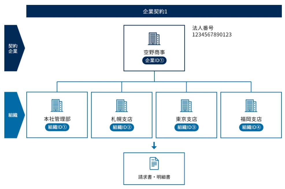(部署・支店・関連会社ごとに組織IDを設定することで明細を分けることは可能となります。)