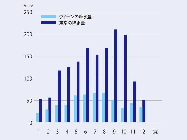 | 月 | 東京の平均降水量 | ウィーンの平均降水量 |
