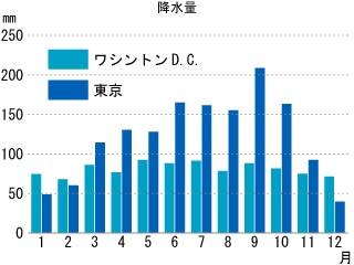 | 月 | 東京の平均降水量 | ワシントンD.C.の平均降水量 |