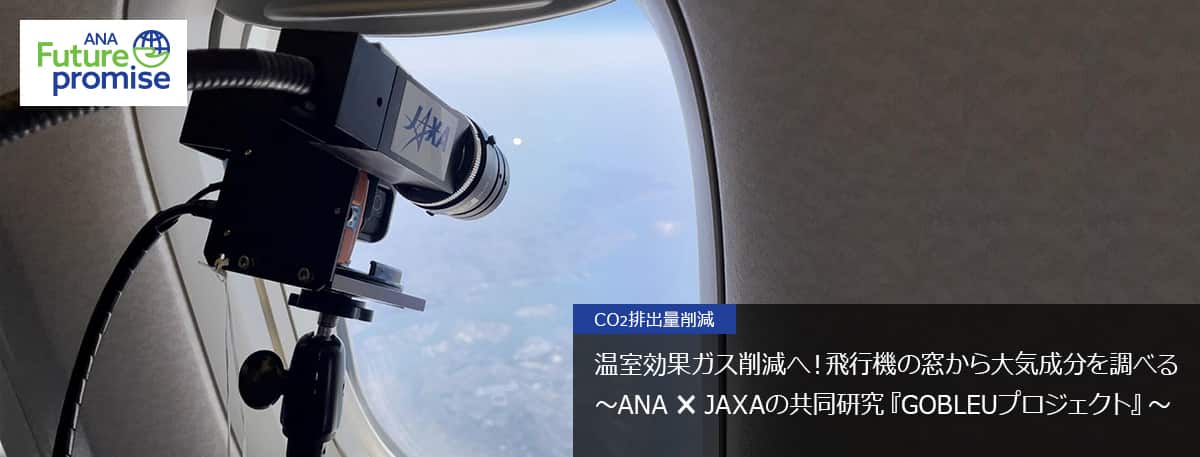 ANAとJAXAの共同研究「GOBLEUプロジェクト」では、「いぶき」の観測技術を応用して小型化したJAXAの観測機器を実際にお客様がご搭乗されているANA便の機内に持ち込み、飛行経路上における大気成分(CO₂、NO₂等)の詳細な濃度分布を観測します。