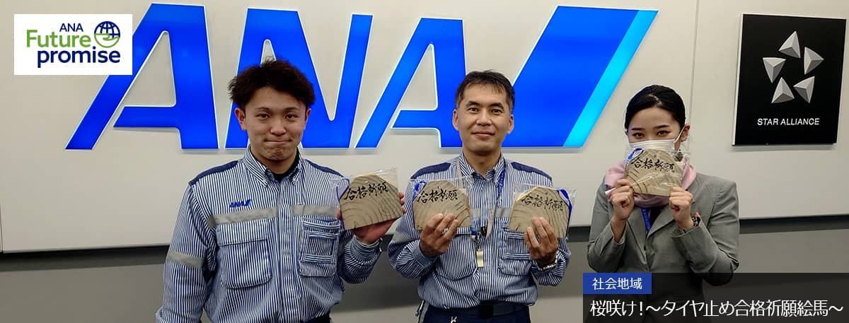 ANAエアサービス佐賀では、航空機のタイヤ止め廃材を再利用して絵馬を作製し、2023年1月より合格を祈願して受験生のお客さまにお配りいたしました。(現在は配布を終了しています)