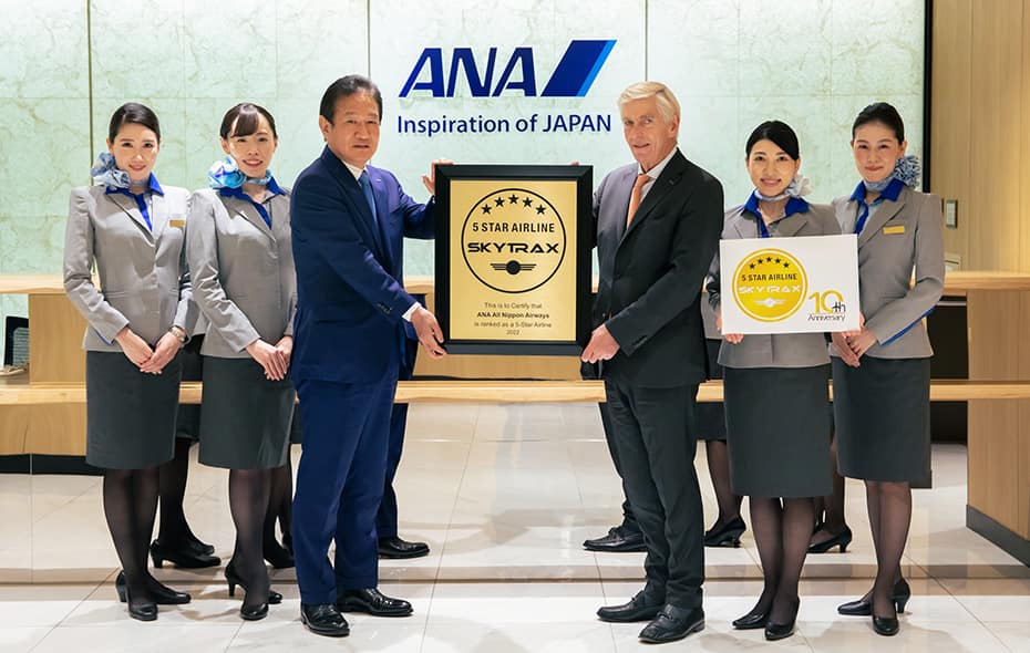ANAは、5スターエアラインとして、お客様への感謝を胸に、過去の評価に決して驕ることなく、これからも世界のお客様に「夢」や「感動」に溢れるサービスで、安全かつ高品質な空の旅をご提供してまいります。