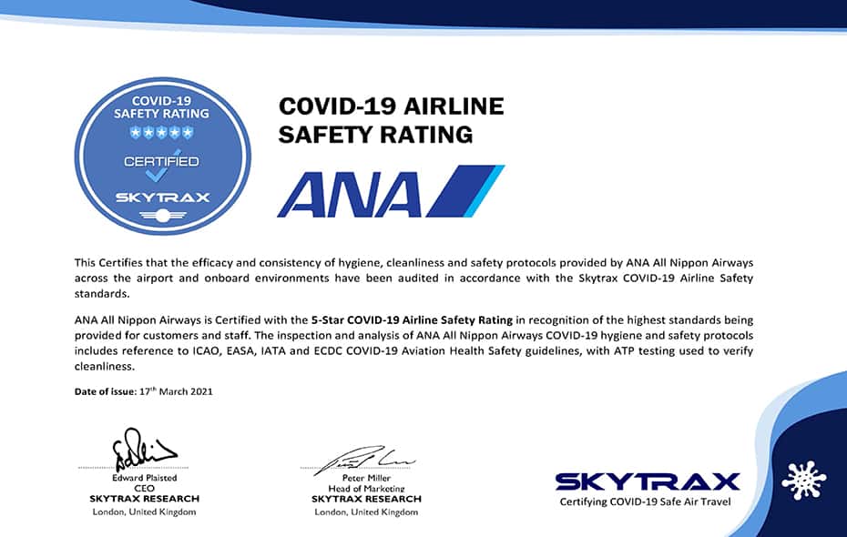 2013年から12年連続、ANAは英国の格付機関SKYTRAX社より世界最高評価「5スター」の航空会社に認定されました。