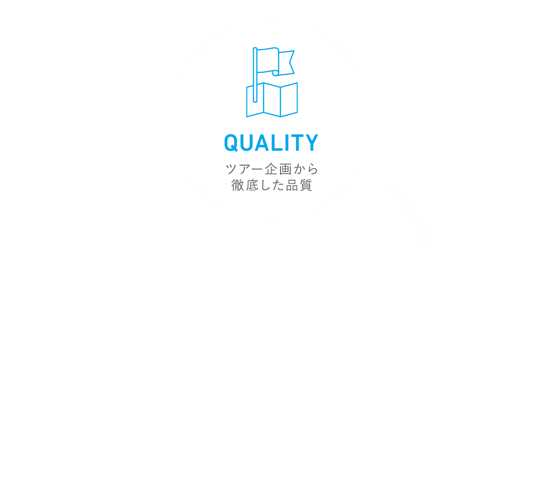 現地に精通した社員と、私たち独自の品質基準*を満たした取引先が協業し、常にこだわりの商品企画を行うことで、安心で快適な旅をみなさまにお届けします。