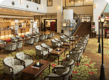 明治時代の洋館を思わせるロビーでは、袴姿のマドンナがお出迎えをしてくれます。自然を肌で感じながら心ゆくまでゆったり名湯に浸れます。道後温泉本館までは徒歩3分。