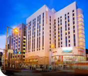 松山の中心街にあり、目の前には城山がそびえ、道後温泉にも近い絶好の地にあります。官公庁にも近く、ビジネス・観光の拠点に最高の条件を備えたホテルです。