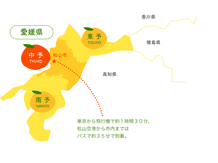 愛媛には「3つの太陽がある」と言われています。一つは南国の空に輝く太陽、二つ目は海に反射する太陽、そして三つ目は斜面に築かれた石垣に照りつけて反射する太陽。この「3つの太陽」に恵まれて、愛媛のかんきつは甘くジューシーな味わいに育っていきます。