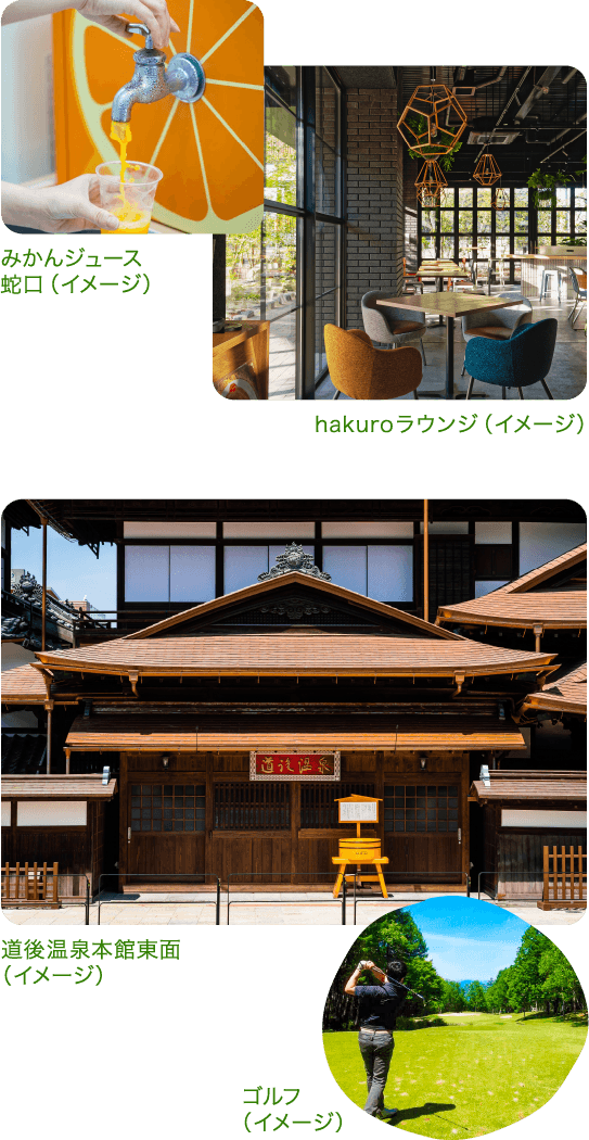 道後でも有数の広さを誇る大浴場や、個性豊かな22の湯めぐりができる心和む癒しの温泉メニューを体験できます。人数や利用シーンに応じた宿泊が可能です。