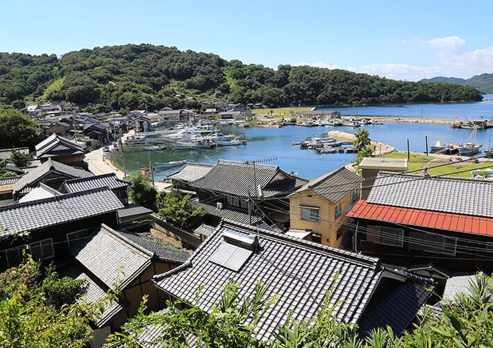 真鍋島の昔ながらの漁村風景の集落を散策し、